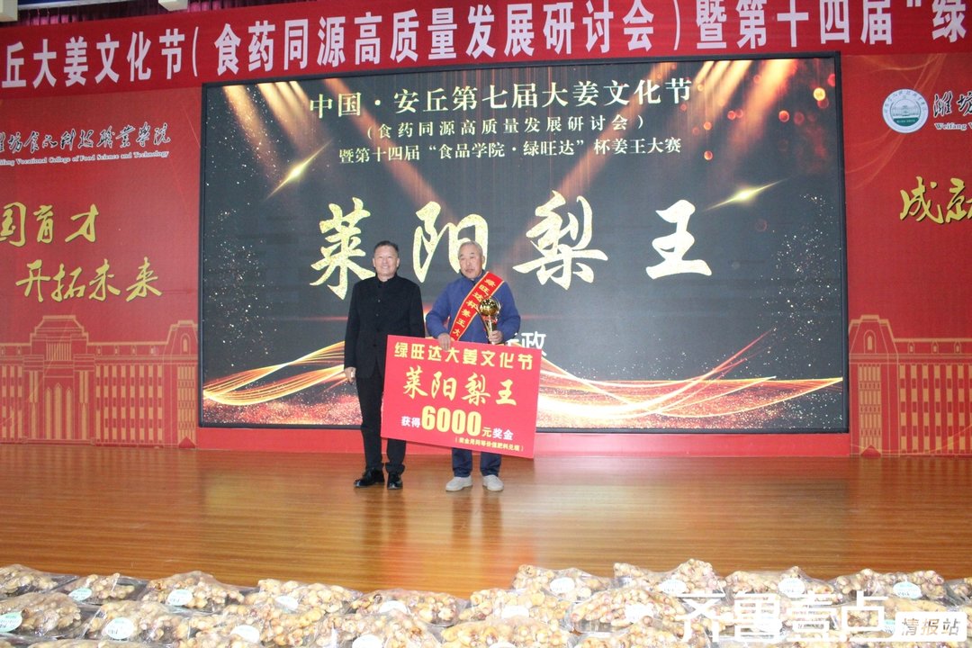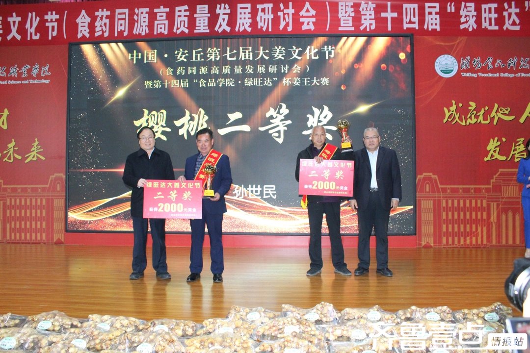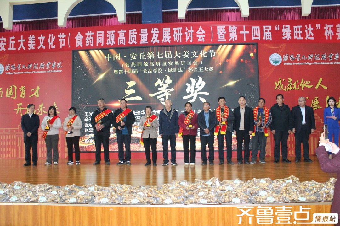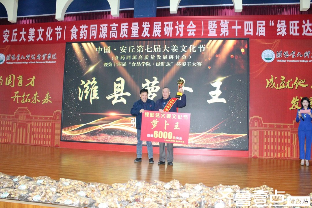 11月9日,中国·安丘第七届大姜文化节暨第十四届“食品学院·绿旺达杯”姜王大赛在潍坊食品科技职业学院落下帷幕。
