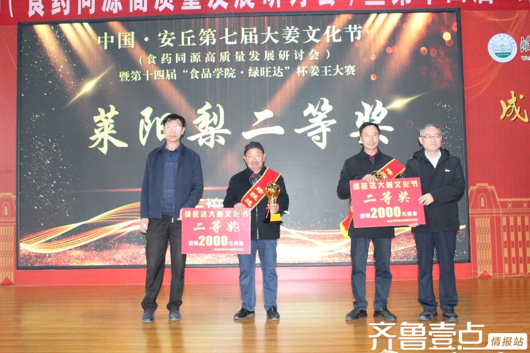 ”本届姜王大赛暨大姜文化节,由潍坊安丘市农业技术推广协会、潍坊食品科技职业学院、潍坊市绿旺达生物肥料科技有限公司联合主办。姜王大赛的大姜测产工作,从去年11月开始筹备,至今整整一年。先后组织农业专家、科技人员1700人(次)深入生姜种植区,历时1个月时间,进行了认真、细致、科学的测产,共测产近7200户,层层筛选出2326户获奖得主。本届大赛,还同步举办了“食药同源高质量发展”科技论坛、合作项目签约以及苹果王、萝卜王、樱桃王及莱阳梨王等项目的颁奖。